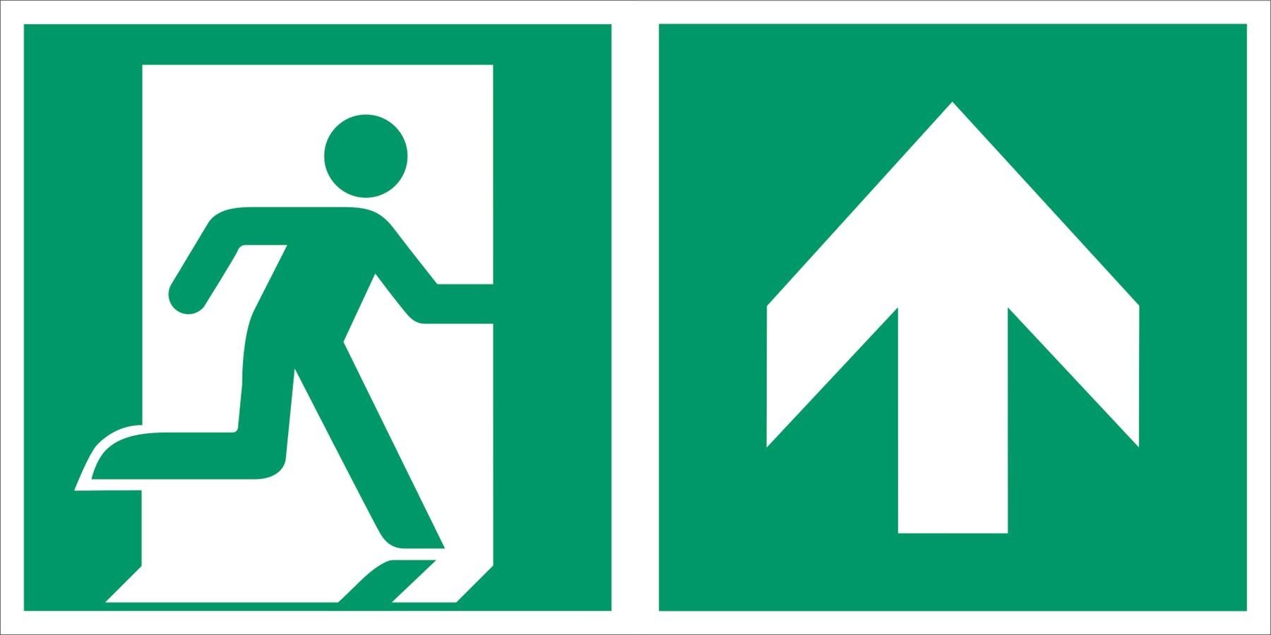 Kombischild Notausgang rechts aufwärts bzw. geradeaus