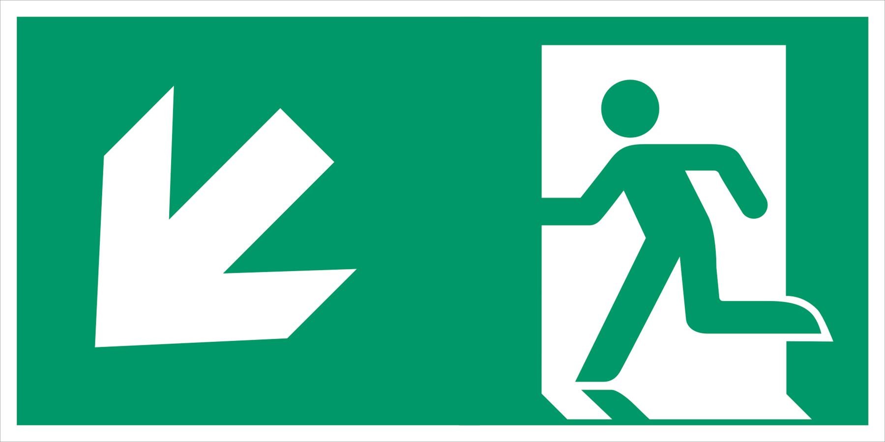 Kombischild Notausgang links schräg abwärts ohne mittige Lichtkante
