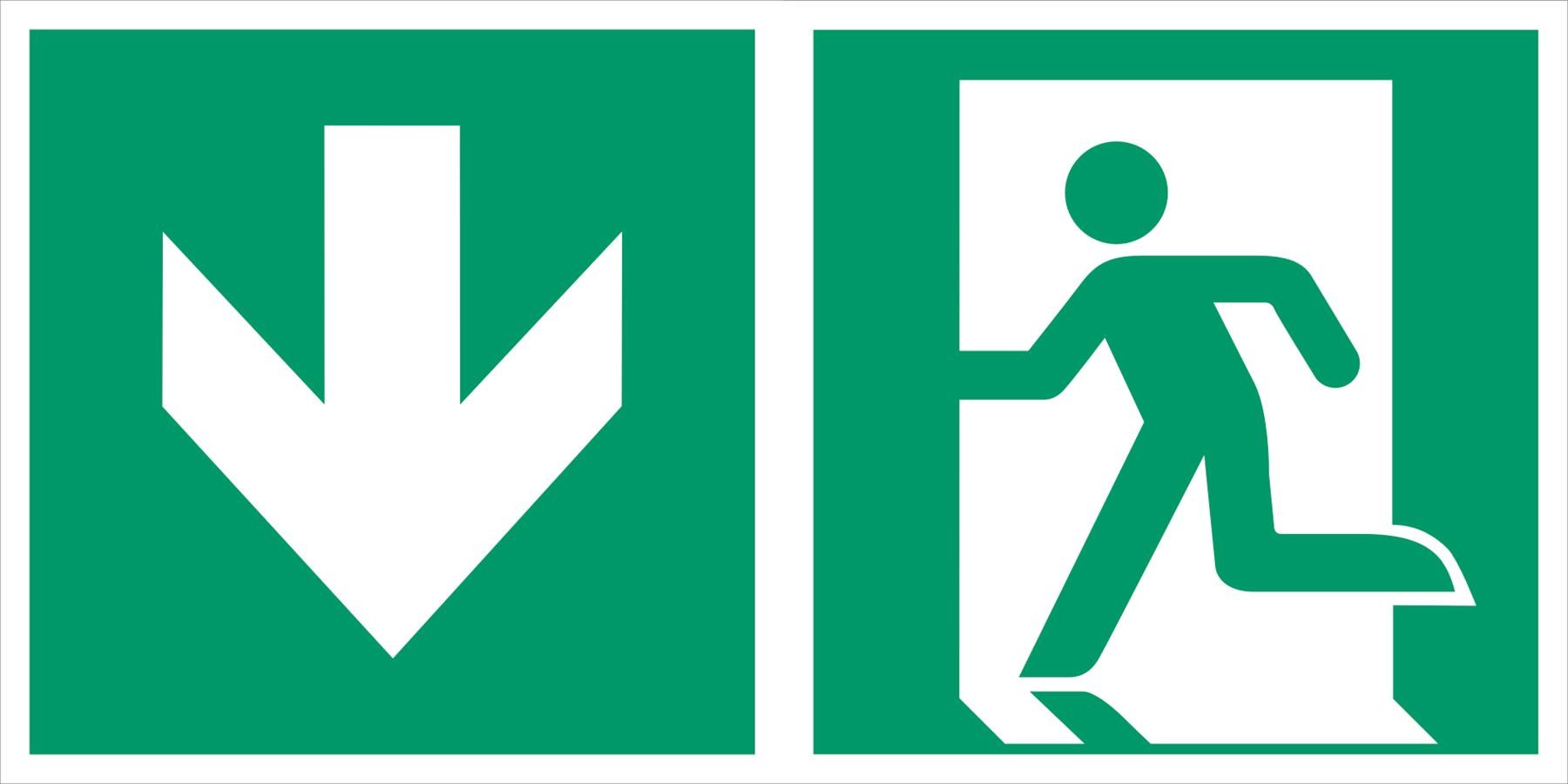 Combination sign emergency exit left downwards
