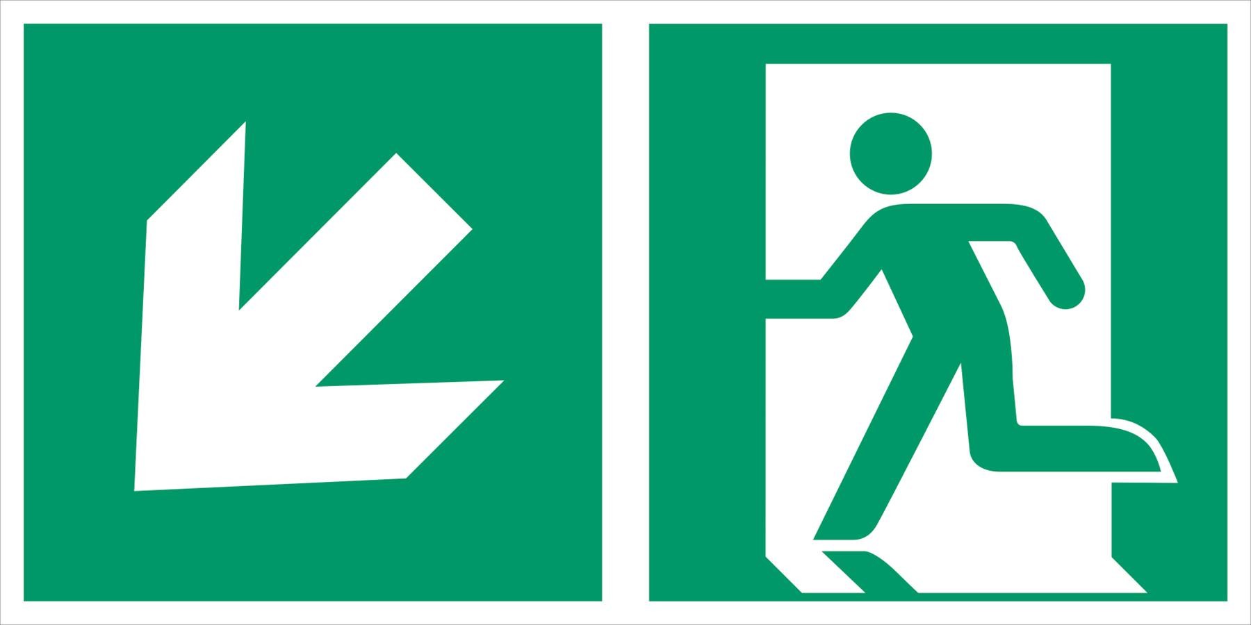 Combination sign emergency exit left diagonally downwards